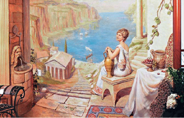 Иллюзия пространства.Как можно увеличить пространство в помещении, убрать стену в доме, не прибегая в процессе реконструкции и ремонта к помощи механических средств? Здесь не обойтись без волшебства света и воздушной перспективы настенной росписи. О том, как применяется сегодня монументальная живопись в оформлении частных интерьеров, мы поговорим с московским художником Виталием Проваловым. – Виталий, глядя на Ваши работы, создается ощущение реальности этих картин-обманок с их бесконечной перспективой. Помещение зрительно увеличивается, а это немаловажно для большинства типовых квартир. Каким образом Ваша живопись может настолько изменить пространство? – Здесь важно наличие следующих условий: картина должна быть выполнена с соблюдением законов перспективы, она должна быть написана качественно, а кроме того, в нее нужно еще вложить кусочек своей души. Декоративная живопись может не только сильно повлиять на пространство, но, главное, повлиять на внутренний мир человека, изменить настроение, украсить повседневность жизни. Тогда это искусство. Лично мне ближе объемно-пространственный подход, при котором возникает эффект реального присутствия некоторых предметов. Ну а насколько это удается – судить вам. – Как Вы находите сюжеты к Вашим картинам? – Во-первых, это зависит от пожеланий хозяев квартиры. Я стараюсь помочь людям запечатлеть дорогие для них воспоминания, воплотить неосуществленные мечты, сохранить впечатления, привезенные из путешествий. Ведь в мире столько дивных мест, прекрасивых, при разном освещении, в разное время года, в разную погоду. Во-вторых, условия диктуют особенности самого интерьера. Иногда сразу, иногда после долгих поисков возникает сюжет будущей картины. А бывает наоборот, какая-нибудь деталь подсказывает и сюжет, и композицию картины. Очень важно стараться передать настроение вплоть до шума прибоя, дуновения ветерка, скрипа колес арбы, птичьих голосов. – К каким сюжетам Вы уже обращались в своем творчестве? – Что такое дом для человека? Это не только место, где он спит, ест и хранит свои вещи, отдыхает от городской суеты. Это место, где ждут его родные, куда приходят друзья, где живут его воспоминания и надежды. Я участвую в созидании такого дома, в который хочется приходить, в котором хочется жить и мечтать. Люди, доверившие мне оформление своих домов, очень разные и интересные. Одной из первых моих монументальных работ была картина в квартире популярного исполнителя Евгения Осина. К его идее написать морскую бухту добавились мои детские впечатления от прочитанных книг Стивенсона и Жюля Верна. А вот сюжет картины «Средневековый дворик» ясен уже из названия. Тема возникла сама собой, так как комната находилась в подвале и потолок пересекали балки из грубого темного дерева. Рыцарь и оруженосец на этой картине – это портреты детей хозяина дома. В одной из квартир я предложил оформить комнату в греческом стиле. Хозяйка этого дома предстала на этой картине в образе прекрасной гречанки. С большим удовольствием обращаюсь к теме русского пейзажа. Особую радость принесла мне работа над картиной «Вид на Оптину пустынь». – Расскажите, в какой технике Вы работаете, какими красками, какие материалы используете при оформлении помещения? – Техника живописи может быть различной. Например, наиболее про